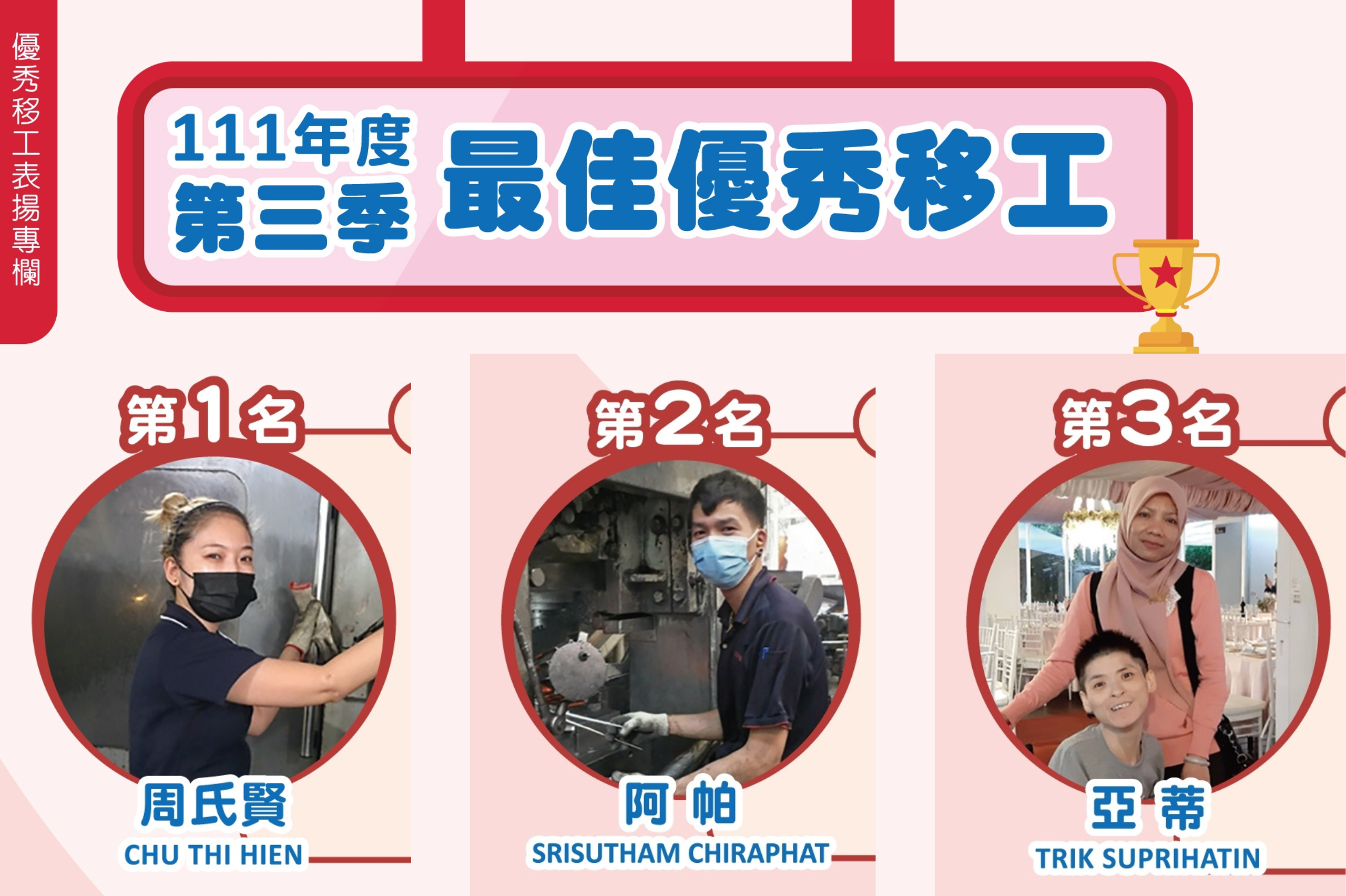 【189期】111年度第三季最佳優秀移工