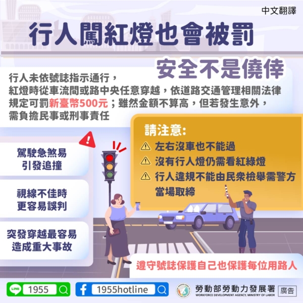• 行人闖紅燈也會被罰,安全不是僥倖